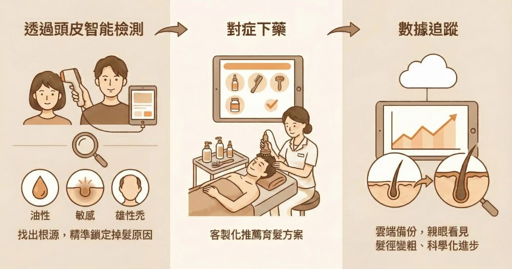 這也是為什麼,越來越多人選擇從「頭皮檢測」開始了解掉髮原因找出根源,而不是盲目嘗試療程。