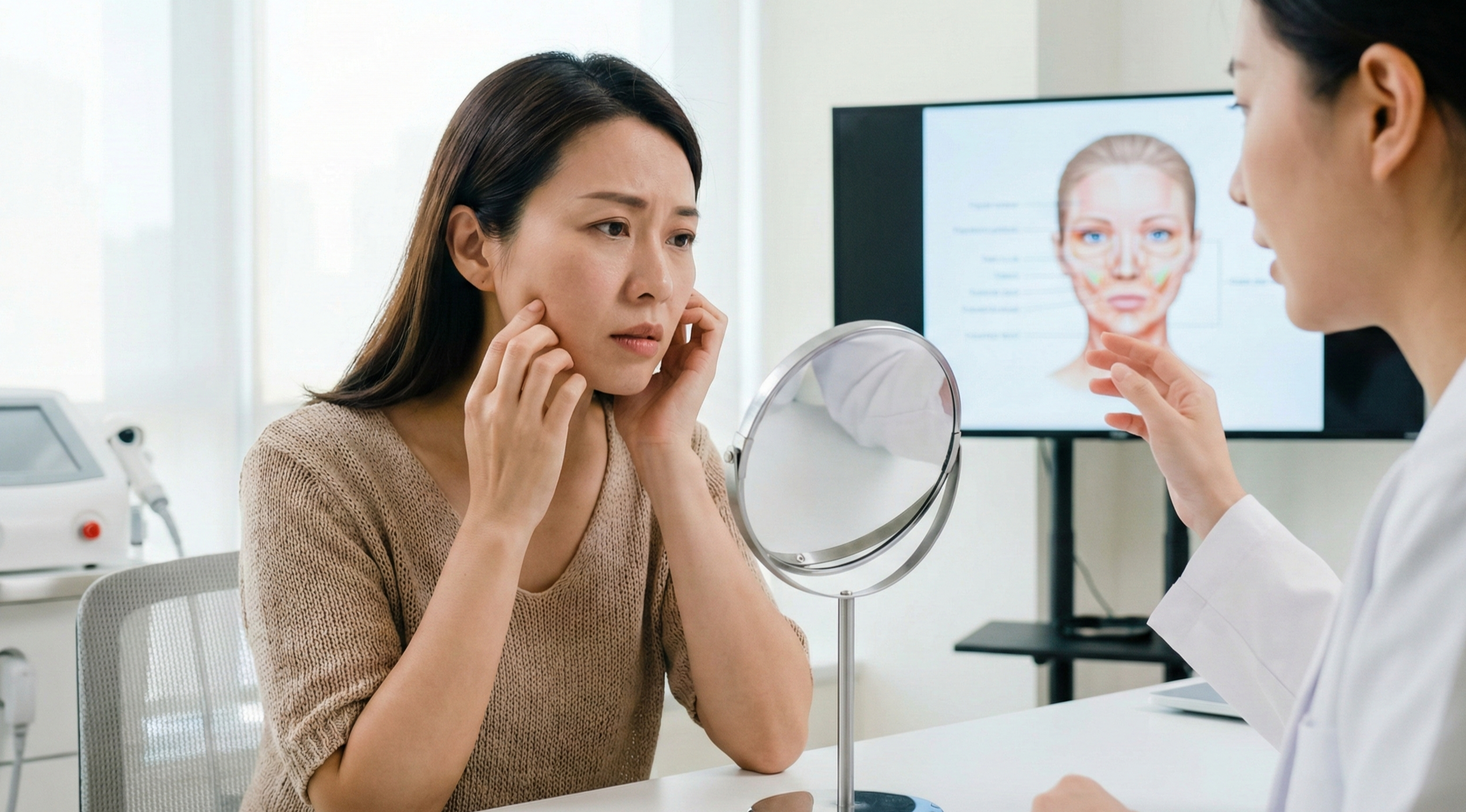 - 量化鬆弛程度:儀器能客觀分析肌膚彈性、膠原蛋白流失狀態,幫助醫師確認嘴邊肉是脂肪過多還是結構鬆弛所致。